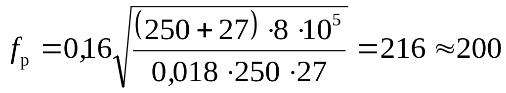 Вычисляем частоту колебаний пола по формуле (13) при Ед = 6,6×105 Па, e = 0,1 (таблица 16) и d = 0,01(1 - 0,1) = 0,009 м: