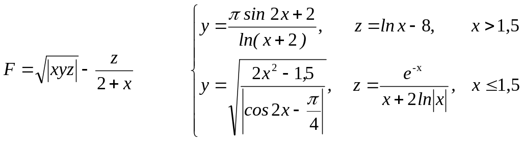 Задание 1. Подготовить описание функции, заданной в соответствии с вариантом, вычислить значения этой функции при x1 и x2