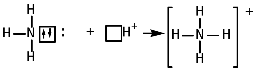 Химическая связь, образованная без возникновения новых электронных пар, называется координационной или донорно-акцепторной. Этот вид связи можно иллюстрировать схемой образования иона аммония [NH4]+: