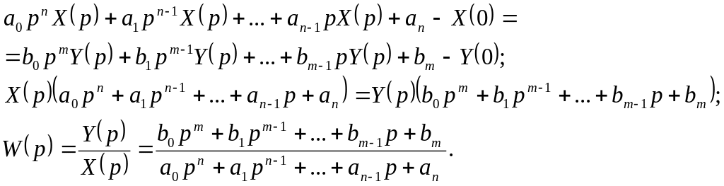 Передаточной функцией W(p) называют отношение изображения выходной величины к изображению входной величины при нулевых начальных условиях.