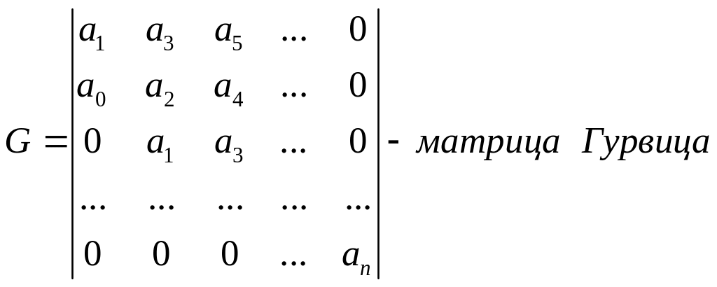 Для того чтобы исследовать устойчивость замкнутой системы нужно составить матрицу G размера nxn из коэф-тов хар. полинома по правилу: