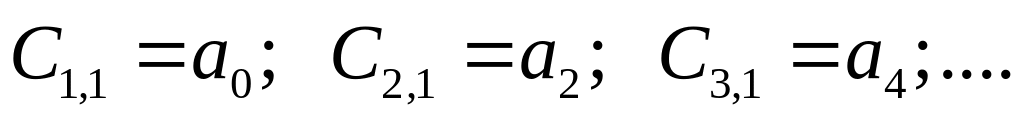 3. Каждый столбец ниже диагонального элемента заполняется коэф-тами по убывающим индексам.
