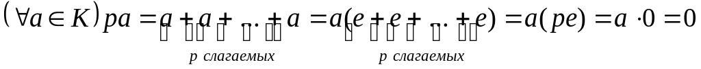 Определение 7. Характеристикой кольца А с единицей е называется число О, если ne=0 только при n=0; характеристикой кольца А называется натуральное число р, если hl=0 и нет такого натурального числа m<p, что ml=0.