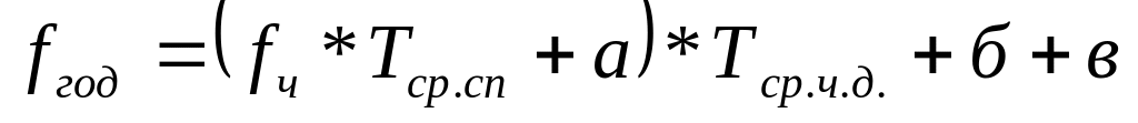 fгод=fч*Tср.пр.*K1*Tср.ч..