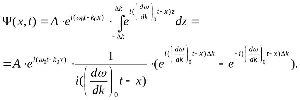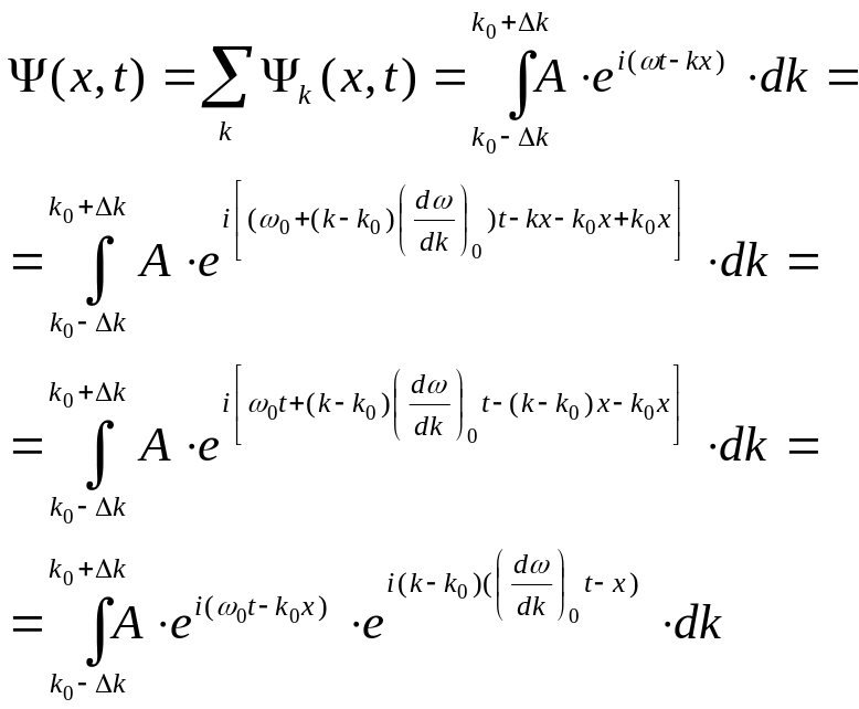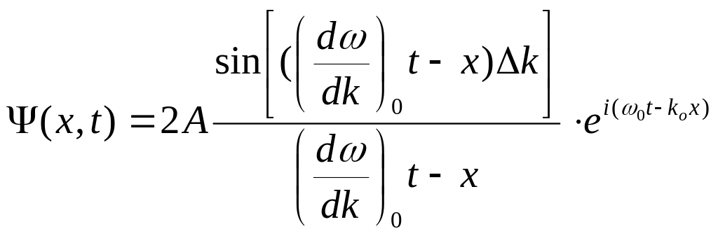 тогда результирующая волна, являющаяся суперпозицией волн, формирующих пакет, будет иметь вид:
