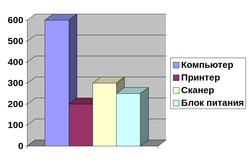 Задание. Создайте таблицу, как показано ниже, выделите первые две колонки (кроме заглавия) и постройте диаграмму, аналогичную рис. 8.