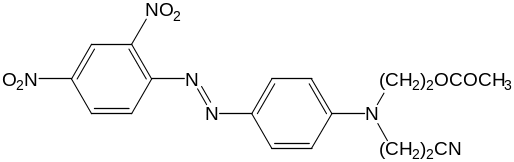 Класс азокрасителей – один из важнейших, так как на их долю приходится около 50% общего объема красителей. Азокрасителями, в общем случае, называют соединения, содержащие азогруппу –N=N–. В зависимости от числа азогрупп выделяют моноазокрасители, дисазокрасители и полиазокрасители. Токсикологические характеристики одного из красителей этого типа “Красителя органического дисперсного полиэфирного Алого С” представлены ниже.