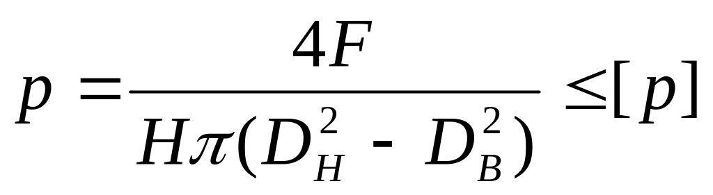 где Н - число витков резьбы гайки;DH - наружный диаметр резьбы, м.