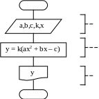 На рис. 2. приведен алгоритм линейного вычислительного процесса. Как видно из рисунка все операции алгоритма выполняются последовательно и в одном направлении. Алгоритм применим для вычисления функции y при любых значениях a, b, c, k, x, следовательно, он обладает массовостью, не может быть двояко истолкован (обладает определенностью), всегда приводить к конечному результату (результативный).