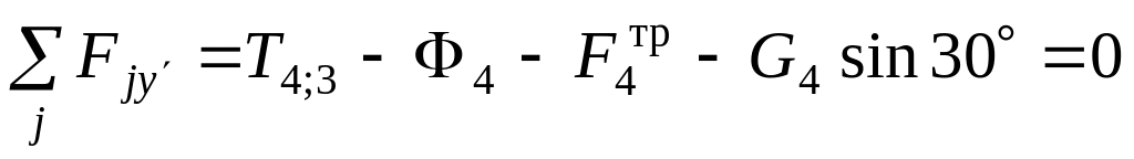 Уравнения равновесия системы сил, приложенных к грузу 4: