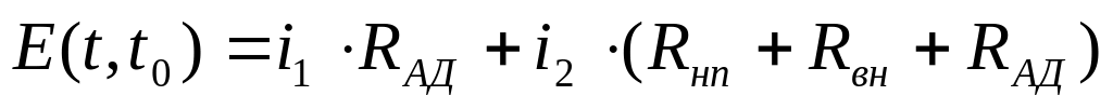 Термопара в цепь включена так, что ток на участке сопротивления идет в том же направлении, что и от источника Б. Тогда из первого закона Кирхгофа: