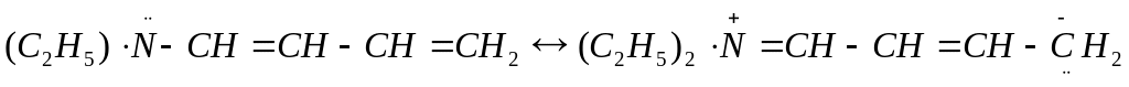 Введение в молекулы красящих веществ заместителей с не поделенными парами электронов вызывает поляризацию молекул с сопряженными двойными связями, т.е. постоянное смещение – электронов, не зависящее от поглощения света. Заместители с не поделенными электронами, способными вступать во взаимодействие с – электронами цепочки сопряженных связей, вызывают появление положительного заряда на одном конце молекулы и отрицательного на другом, т.е. молекула приобретает полярность: