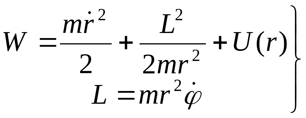 Тогда из (12.10а, 12.12 и 12.14) для энергии и момента импульса частицы, движущейся в центральном поле, получаем