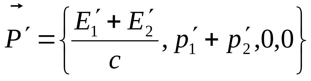 Найдем связь между нулевыми компонентами 4х-вектора импульса-энергии до и после столкновения.
