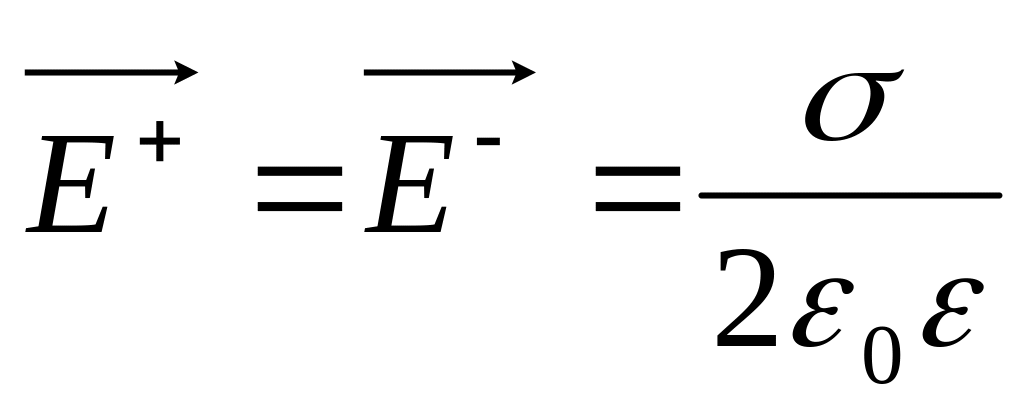 Каждая из заряженных пластин плоского конденсатора создает вблизи поверхности электрическое поле, модуль напряженности которого выражается соотношением: