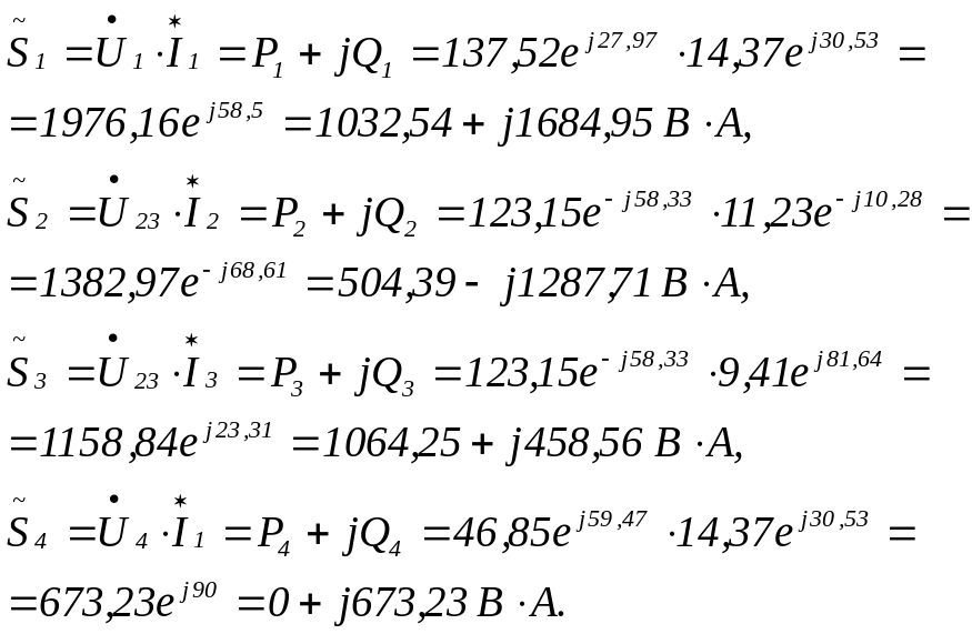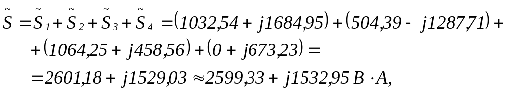 Расчет мощностей на элементах схемы, как указывалось выше, удобнее находить как полные мощности ветвей схемы. Так, для ветвей рассматриваемой схемы имеем: