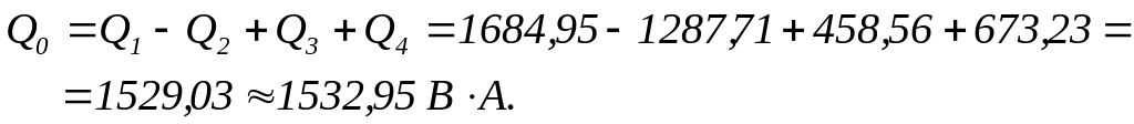 В этих выражениях Р1, Р2, Р3, - активные мощности, выделяемые на активных сопротивлениях r1, r2, и r3 , a Q1, Q3, Q4 и Q2 - реактивные мощности, выделяемые на катушках индуктивности L1, L2, L3 и конденсаторе С2 соответственно. Следует помнить, что эти мощности имеют различные размерности. Так, полные мощности S имеют размерность ВА, активные - Вт, реактивные - ВАр.