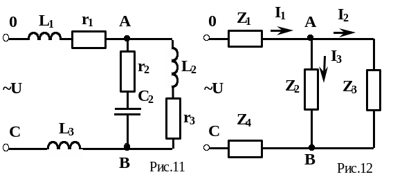 Для расчета токов в ветвях разветвления, как указывалось выше, необходимо предварительно определить напряжение UAB на участке разветвления: