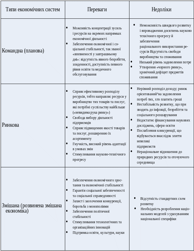 За сучасних умов жодна економічна система не існує в чистому вигляді. Більшості країн притаманні риси різних систем, адже їх поєднання може забезпечити більш ефективну комбінацію суспільних ресурсів для кращого досягнення господарських цілей. Такі системи називають змішаними.