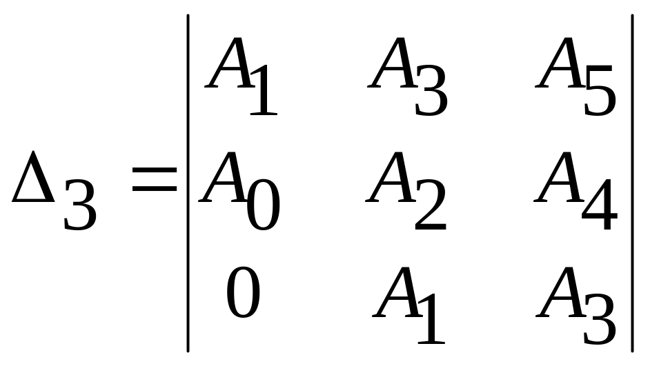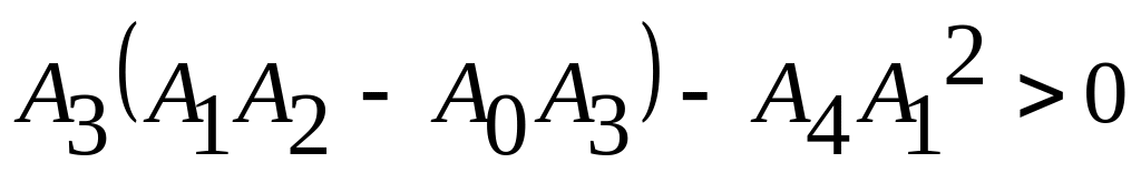 Раскрывая, например, определители Гурвица для характеристических уравнений третьего, четвертого и пятого порядков, можно получить следующие условия устойчивости: