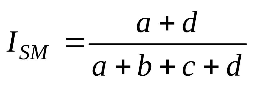 Наиболее распространенными из индексов, учитывающих отрицательные совпадения, являются коэффициент простого совпадения или индекс Сокала – Майченера.