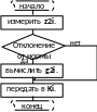 Алгоритм работы координирующего блока управления К0 также можно представить как некоторую систему, в данном случае систему вычислительных операций. Структурная схема алгоритма блока для пары К0Кi представлена на рис. 2. Данная структурная схема содержит функционально последовательные операции, изображаемые прямоугольниками (измерение z2i, вычисление g2i, передача воздейст-вий к Ki) и логический блок, изображаемый ромбом и позволяющий системе действовать различным образом в ситуациях, когда значение z2i отклонилось от нормы или, напротив, находится в заданных пределах.