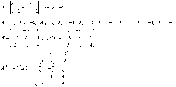 |A| = 2. Найдем алгебраические дополнения элементов матрицы A.