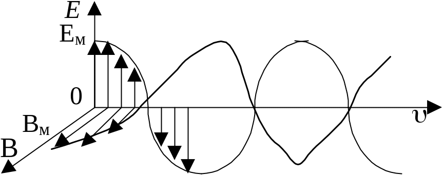 Электромагнитные волны представляют собой распространяющиеся в пространстве взаимосвязанные колебания электрического и магнитного полей. В отличие от звуковых (акустических) волн, электромагнитные волны могут распространяться в вакууме.