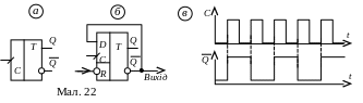 Умовне графічне позначення рахункового тригера, дано на мал. 22а.