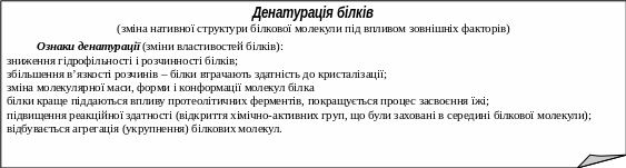 Структура молекули білка дуже лабільна й легко змінюється під впливом різних факторів, що приводить до зміни їх нативних властивостей – фізичних, фізико-хімічних і біологічних властивостей.