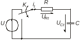 Перехідний процес у колі з послідовним з’єднанням резистивного і ємнісного елементів при вмиканні його на джерело постійної напруги (рис. 34.5)