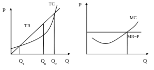 У фирмы на краткосрочном временном интервале существуют два пути определения объема производства. Первый состоит в том, что фирма сравнивает получаемый ею валовой доход при различных объемах выпуска с валовыми издержками, соответствующими каждому из возможных объемов (рис. 6.20,а). Фирма выберет вариант, когда разница между валовым доходом и валовыми издержками будет максимальной, иными словами, будет достигнут максимальный объем прибыли: max(TR-TC).