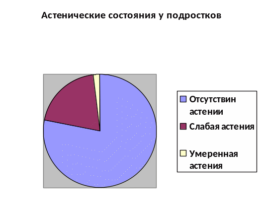 Полученные результаты исследования по выявлению астенического состояния у подростков отражены в таблице 2 и диаграмме 2.
