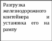 При поступлении товаров в железнодорожных контейнерах операции выполняются по следующей схеме: проверка целостности пломб и вскрытие контейнера (отсутствие повреждений и поломок); строповка и перемещение контейнера на разгрузочную рампу; перемещение контейнера в зону приемки товаров.