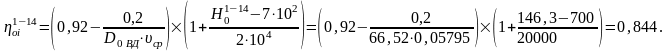 Hi1-14 = hоi1-14 × H01-14 = 0,844 × 146,3 = 123,5 кДж/кг.