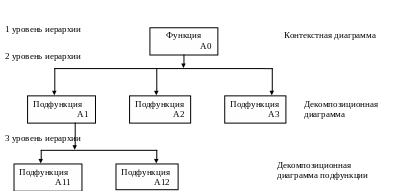На каждом шаге декомпозиции диаграмма предыдущего уровня называется родительской для более детальной (декомпозиционной) диаграммы.