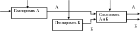 (4) Тип коммуникационной связности. Диаграммы демонстрируют коммуникационные связи, когда блоки группируются вследствие того, что они используют одни и те же входные данные и/или производят одни и те же выходные данные (рисунок ).
