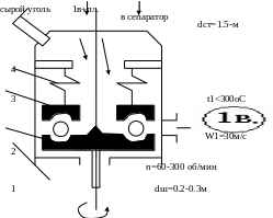 Применяют для мягких высокореакционных углей (торф, БУ, КУ с Vг > 30 %).