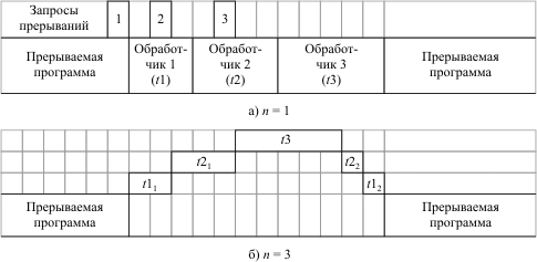 Рис. 14.2. Работа системы прерываний при различной глубине прерываний