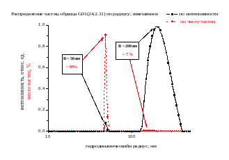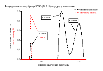 - крупные агрегаты оседают на дно пробирки, таким образом, через некоторое время основной вклад в интенсивность рассеянного света будут давать более мелкие агрегаты.