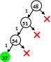 ветка дерева, начиная от числа 48, построена на рисунке справа; красный крестик показывает, что полученное значение превышает 57