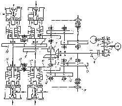 Кинематическая схема привода механизма перемещения (рис.6) осуществляет передачу крутящего момента от вала электродвигателя М цилиндрической паре 1—3, зубчатым муфтам 4, конической паре 5—6 и далее цилиндрическим парам 7—8 и 9—10. Затем крутящий момент передается фрикционным муфтам