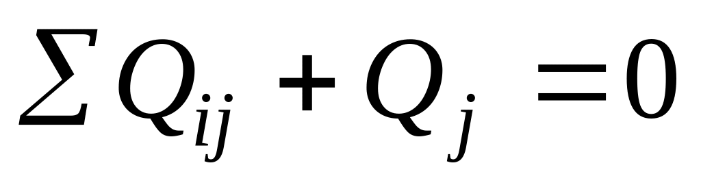 1. Алгебраическая сумма всех потоков газа Qij, сходящихся в узле, включая узловые расходы Qj, равна нулю.