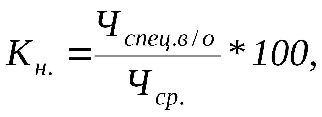 где Чспец.в/о ‑ число специалистов с высшим образованием на данной фирме, предприятии. Применяются и другие показатели качественного состава персонала. Все они могут иметь как процентную, так и коэффициентную форму.