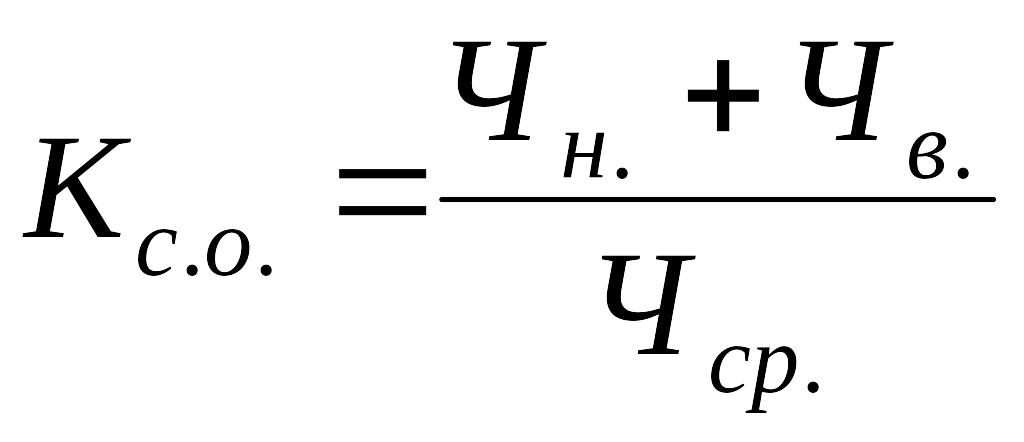 Чн,, Чк ‑ численности на начало и конец периода, П ‑ принятые за период, В ‑ выбывшие за период