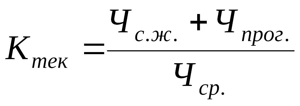 Коэффициент текучести кадров – это отношение числа уволенных по собственному желанию и за прогулы (Чс.ж.+Чпрог.) к среднесписочной численности (Чср):