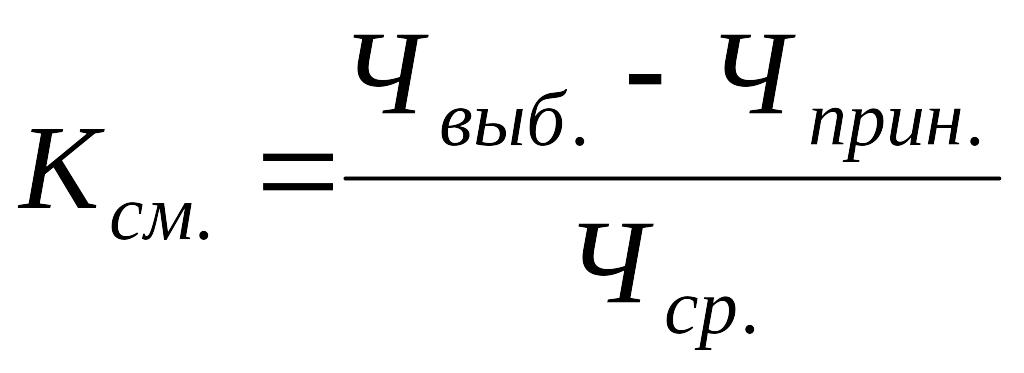 Коэффициент сменяемости кадров – это отношение разности числа выбывших и принятых за период к среднесписочной численности на фирме: