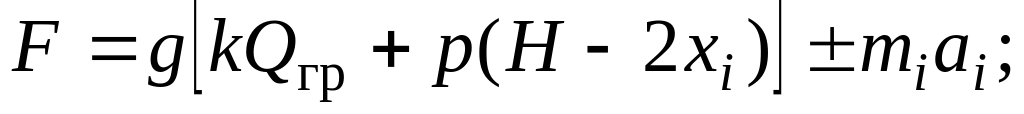 где αр = 0,3÷0,4 — коэффициент, учитывающий степень опорожнения скипа с неподвижным кузовом при его останове в разгрузочных кривых; xi — высота подъема сосуда к рассматриваемому моменту времени относительно начала движения; ai — линейное ускорение подъемной системы в рассматриваемом периоде цикла подъема.