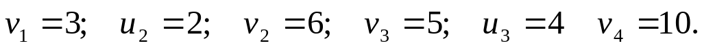 Решение. Задача сбалансированная. Начальный опорный план перевозок строим по правилу северо-западного угла. Полученный план невырожденный (табл. 5.5). Число базисных переменных (занятых клеток) r=m+n-1=3+4-1=6, они выделены цветом.