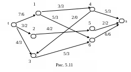Методы решения задачи о максимальном потоке основаны на последовательном увеличении потока при соблюдении условий (5.35)-(5.37). При этом легко увидеть аналогию с перемещением по циклу в методах решения транспортных задач.
